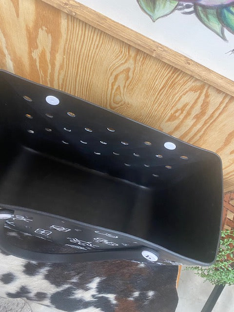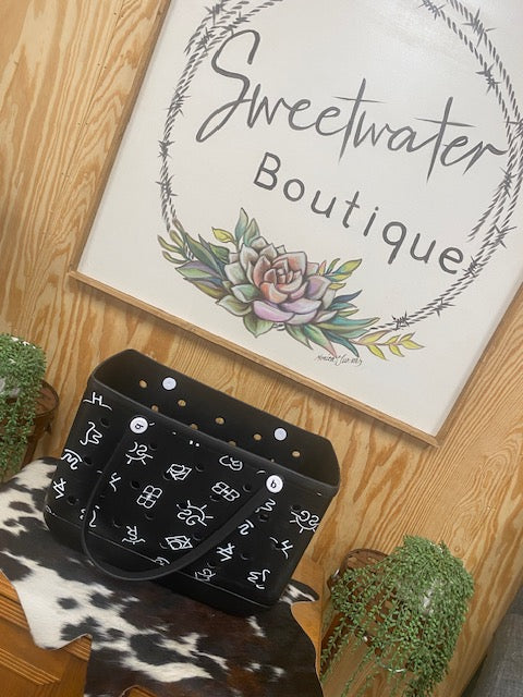 Carry all your essentials in style with this Brands Beach Bag! The large size can hold everything you need for a day at the beach or a picnic in the park. The wipeable material makes it easy to clean, and the unique cattle brand design adds a touch of fun to your outdoor adventures. Don't miss out on this must-have bag!