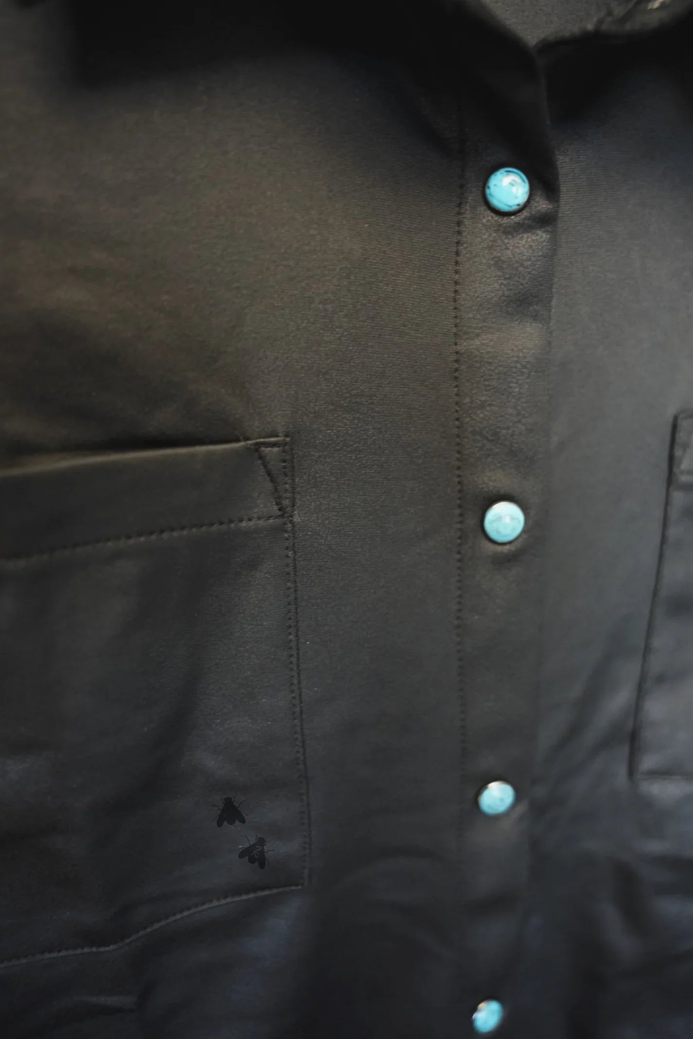 Get your hands on our Leather Lux Midnight top. Made with lux leather, this top features unique turquoise pearl snaps for a touch of personality. Stay comfortable with the blend of 90% polyester and 10% spandex. Button down and stand out in style!