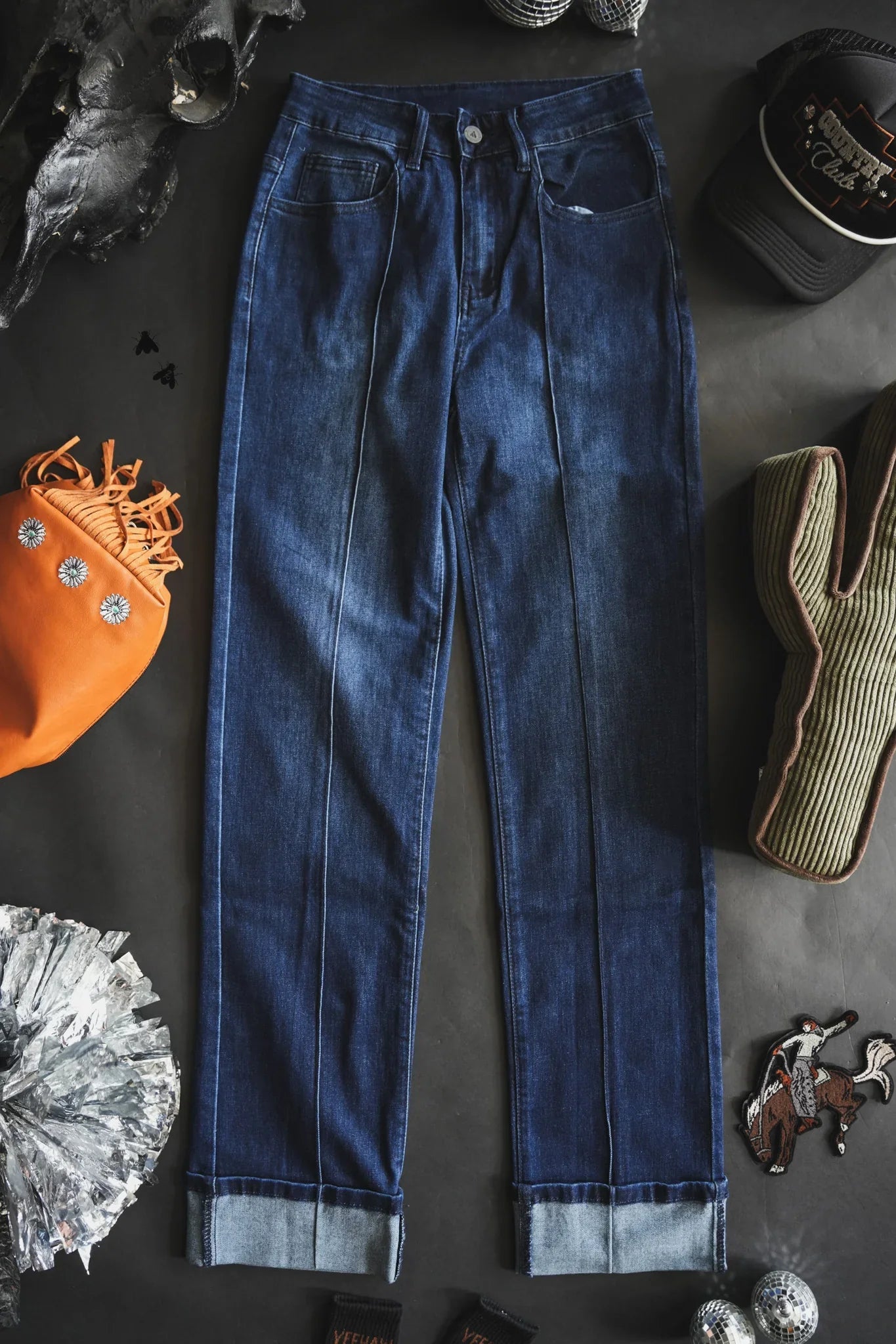 Score big with our Line Drive Jeans! These ahhhmmmaaazzing jeans feature a flattering mid-rise, stretch fabric, and a trendy straight leg design. The dark wash and seam down the middle add a touch of edginess. Plus, with the perfect fit and 95% cotton, 5% spandex material, these jeans will quickly become your go-to choice. Available in true to size and modeled in a small. Home run!!!