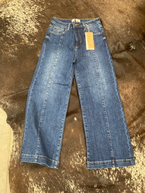 Get ready to elevate your denim game with Risen High Rise Trouser Jeans. These stylish jeans feature a high rise and a front seam down the leg for a chic, dressy touch. With a rise of 10 3/4 and an inseam of 27, these jeans are perfect for tall people who want a cropped look and short people who want the perfect trouser fit. Say goodbye to boring denim and hello to Risen!