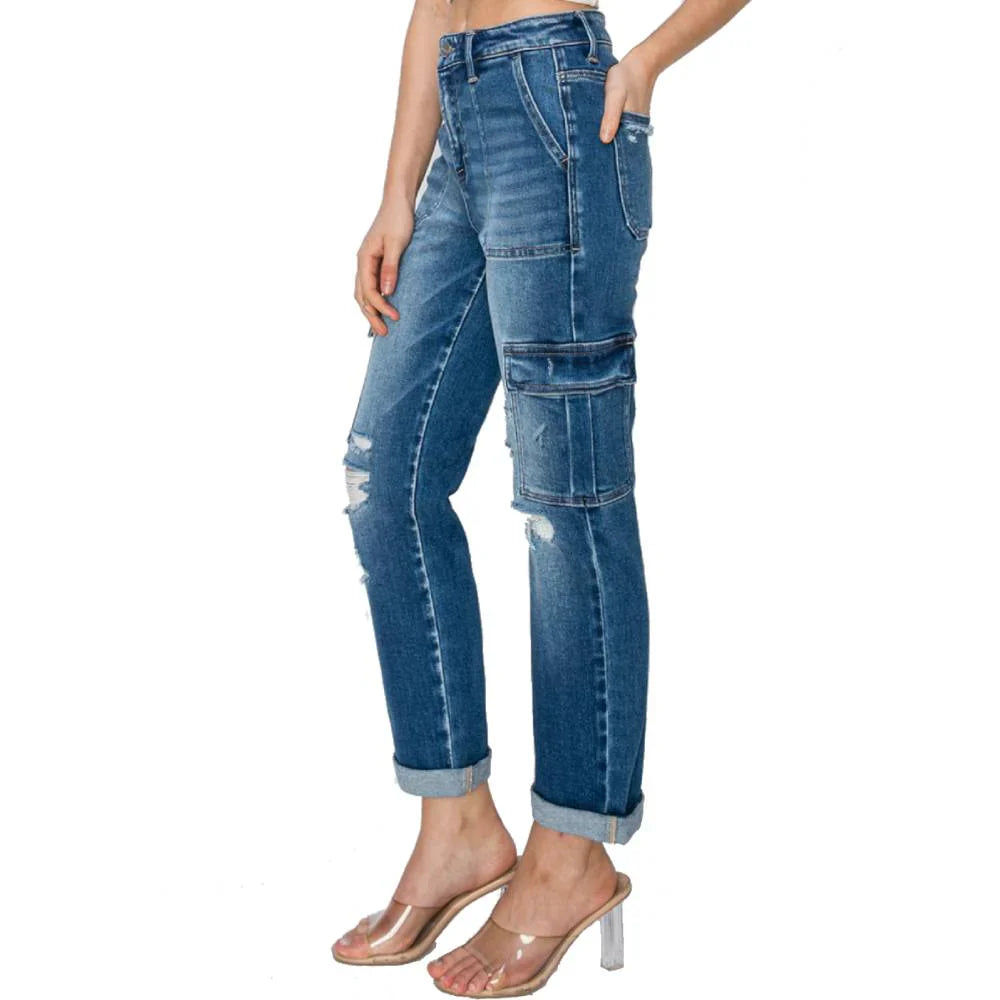 Elevate your style and comfort with Risen HR Ankle Straight Roll Up Pants! With a high-rise fit and stretchy fabric, these pants provide all-day comfort. The dark wash adds a touch of sophistication, while cargo pockets offer practicality. Say goodbye to discomfort and hello to style!