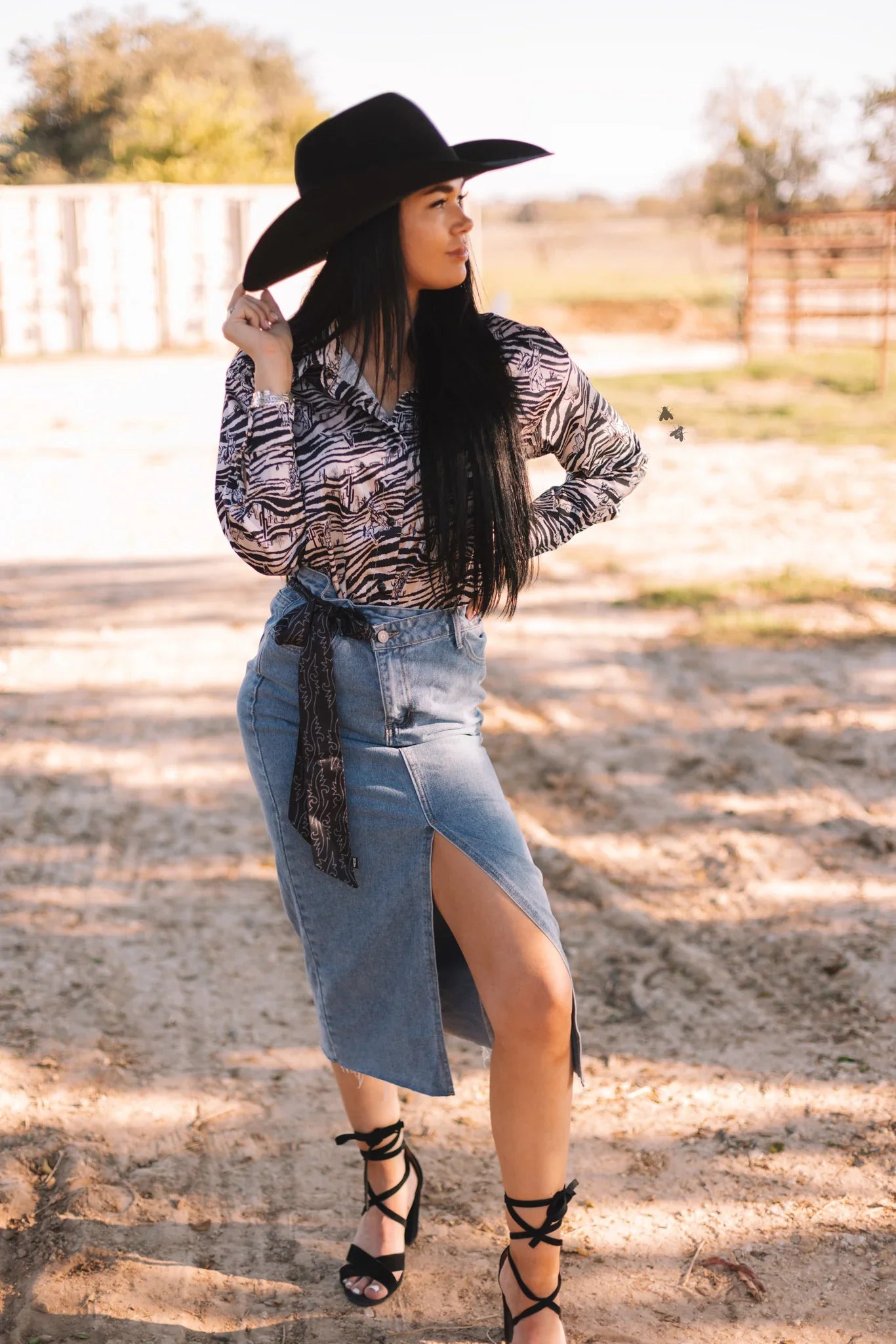 Get the preppy look by pairing it with a collared shirt, tying it in your hair, or giving that LOUIE handbag a Western flare by tying the handles. Again, the options are seriously endless.